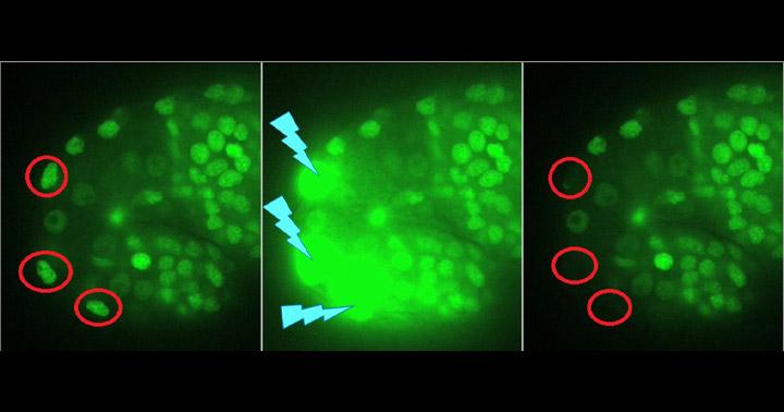 使用光遗传学工具来解决特定细胞群体的命运(安多马赛克)。可以用更强的激光脉冲诱导局部细胞运动(微点)。激活或隔离特定的蛋白质,并分析其对内胚层和内胚层形成的影响。