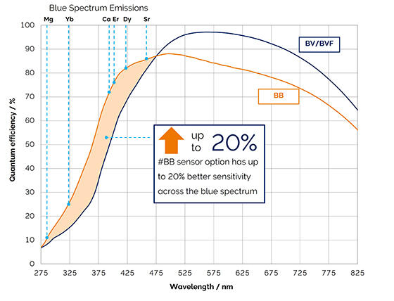 新的“BB”传感器选项提供了高达20%的灵敏度,对光谱蓝色区域的光子,理想的量子捕获离子的快速成像,一个重要的量子计算量子位方法。