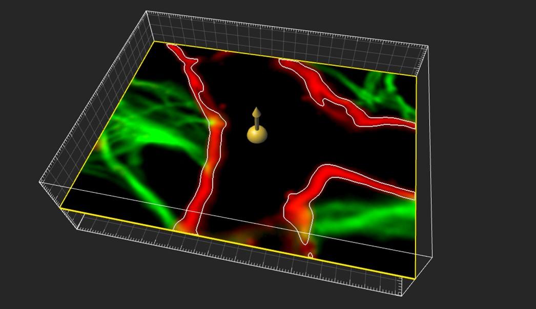 Imaris 9.8简化了对象的创建,验证和编辑,通过为每个组件(点,表面,细胞,纤维丝)提供一个切片模式,渲染对象的轮廓与原始图像数据在一起。这是一个验证分割结果的强大工具。