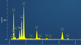 Fig. 2 (Left) Particles meeting detection criteria are detected and coloured. (Right) Typical spectrum acquired from a silicate particle at 20kV