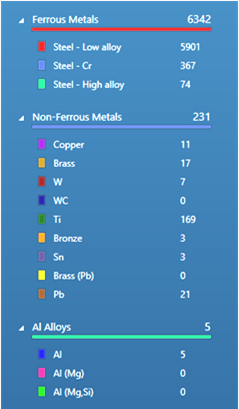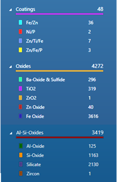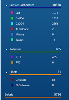 Fig. 4 classification totals and colour key for entire filter analysis run