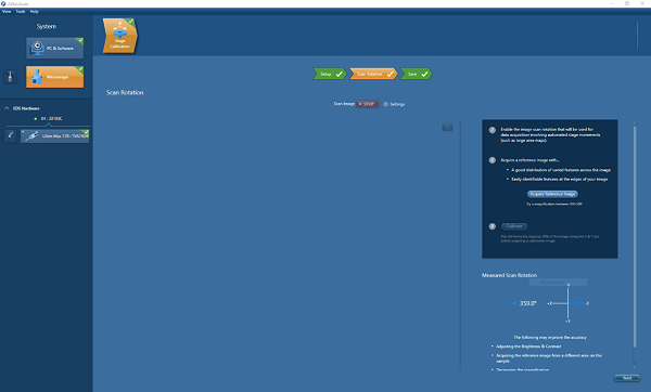 为了克服这个问题,有一个面向用户的校准步骤,其中跟踪样本上的特征,同时在x方向上移动工作台。这一步可以从辅助软件中访问,但在大多数系统中,这不是必需的,因为SEM根据SEM校准数据自动调整扫描方向。此外,对于EBSD分析,我们调整扫描旋转校正作为样本对齐过程的一部分,以确保绝对方向是正确的,这也确保了在大面积映射中保持字段之间的对齐。