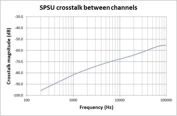 由通道1的激励驱动电流在通道2中引起的串扰信号绘制为频率的函数: