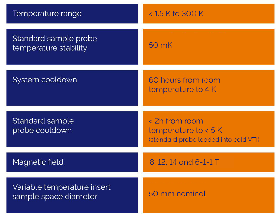 温度范围宽:在VTI中工作时,温度可以控制在25 mK和300 K之间。从室温到基地的快速冷却时间不到6小时。